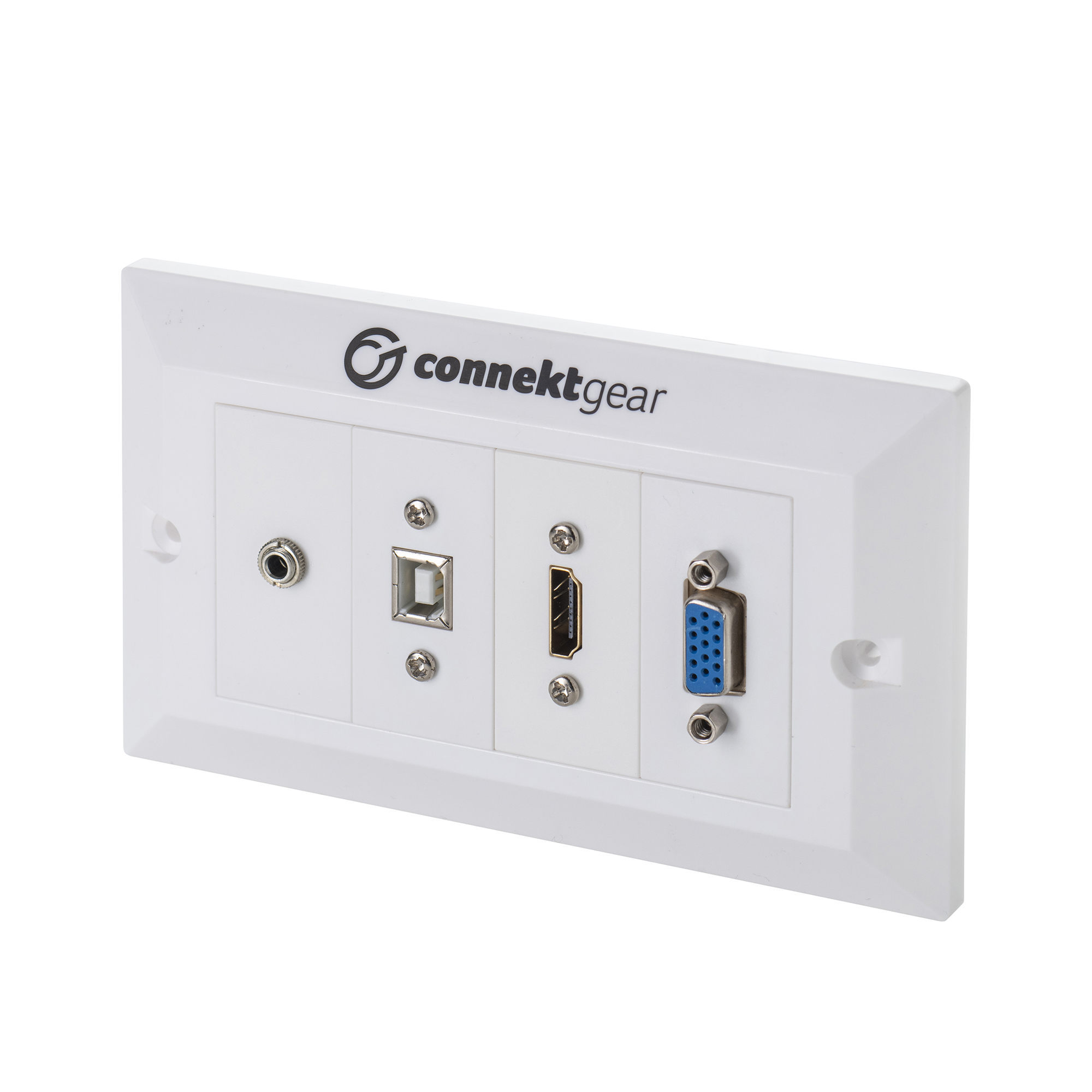 Our 10m, double gang AV Kits include one snap-in 3.5mm module, one snap-in USB 2 Type B module, one snap-in HDMI module and one snap-in VGA module. They also included an extra USB 2 Type A module to be used if needed.