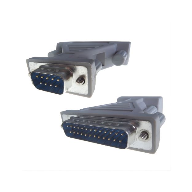 You need to convert a DB9F port to a DB25M port without replacing one of the cables for a female connector.