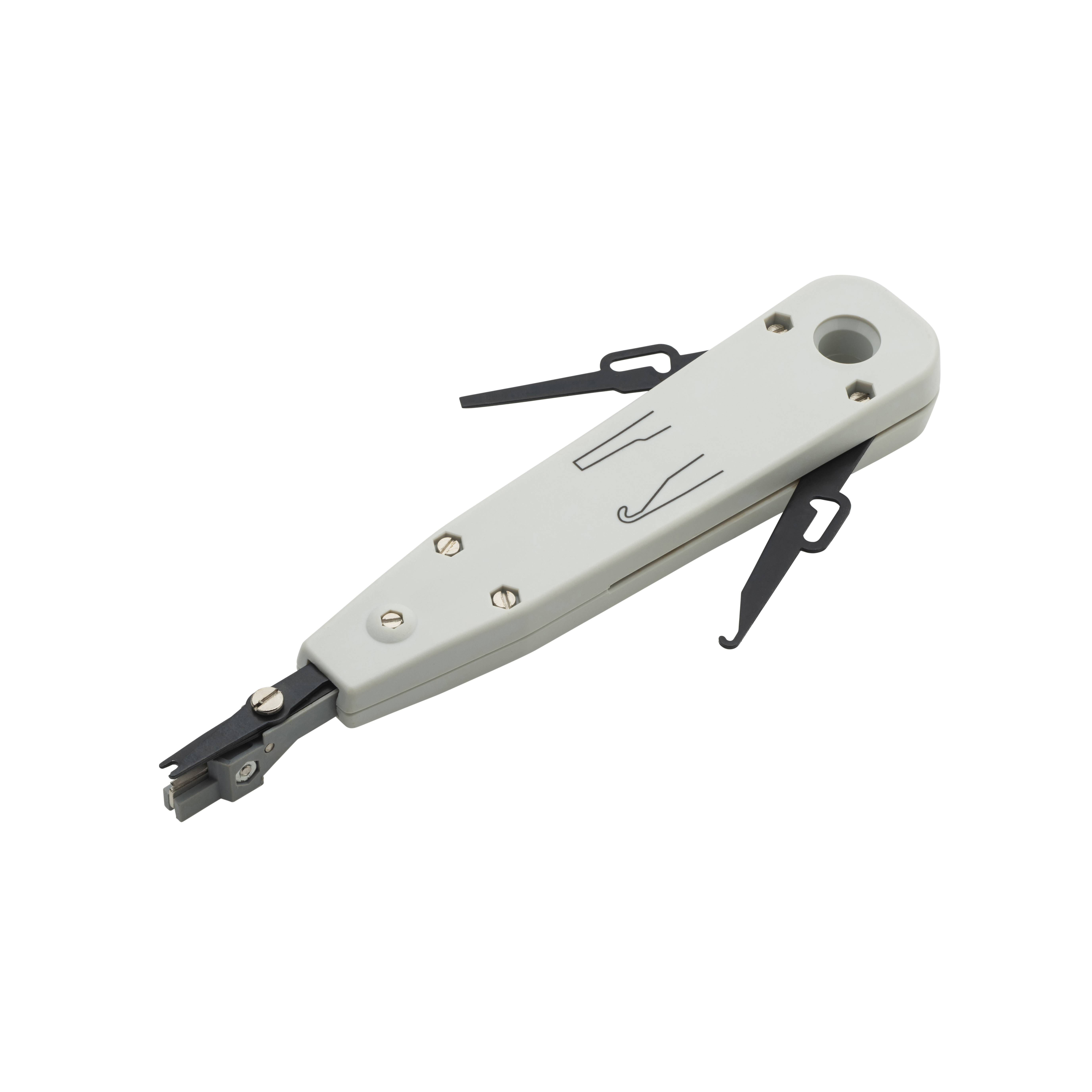 Our punch down tool is designed for cutting, stripping and inserting wires into IDC terminal sockets allowing you to get the accuracy required when terminating cables. Equipped with a spring loaded blade, it cleanly cuts off any excess wire and ensures the wire is fully inserted into the terminal before cutting. The hook also helps remove any existing or incorrect wire from the socket.