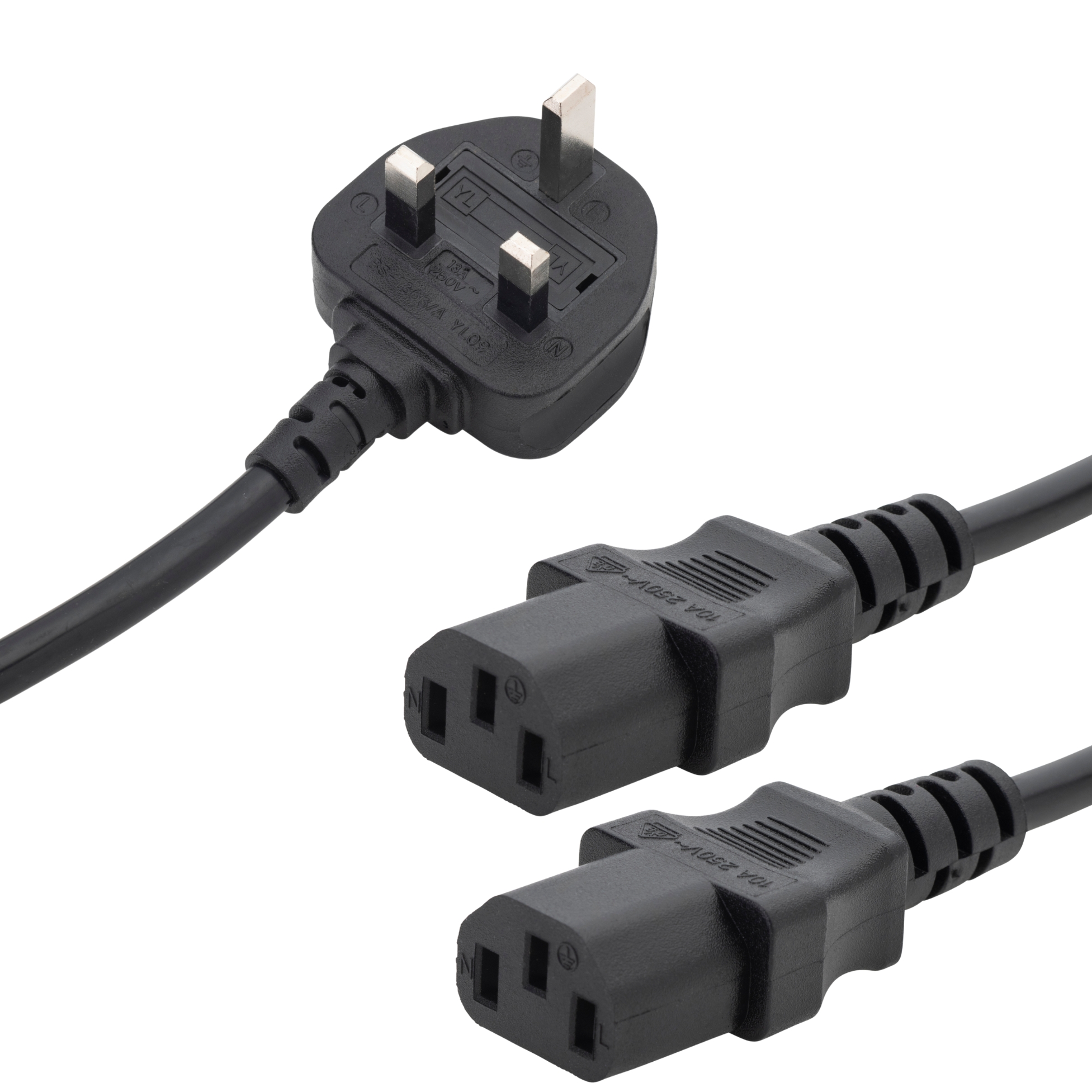 Viewing: Home > UK Plug > C13 (Kettle) > 2.5m UK Mains Power Splitter Cable - UK Plug to 2 x C13 Sockets