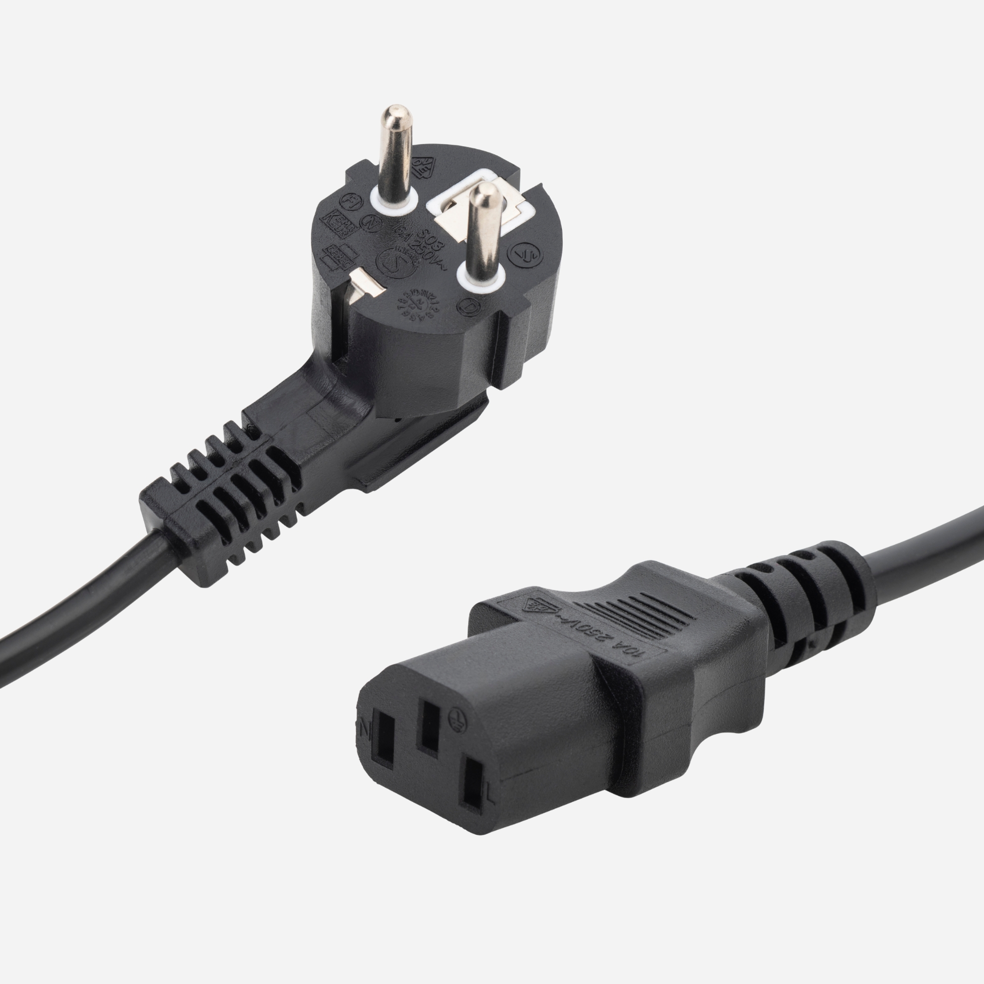Our schuko plug to C5 power cable is built to deliver safe and reliable power to a range of devices, such as laptop chargers, projectors and printers. Featuring a standard schuko plug at one end and a C5 (cloverleaf) socket at the other, it is designed to plug into devices featuring a C6 connector.